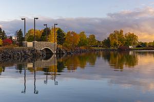 The Walking Bridge At Marina Park With Wonderful Reflections In Lake Superior