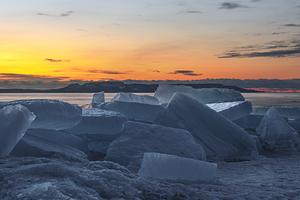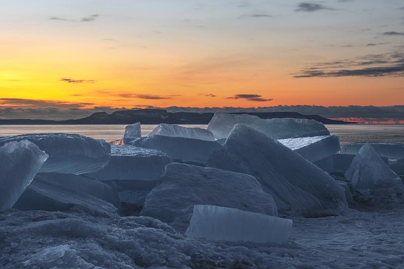 The Sleeping Giant And Blue Ice Chunks Washed Up On Shore
