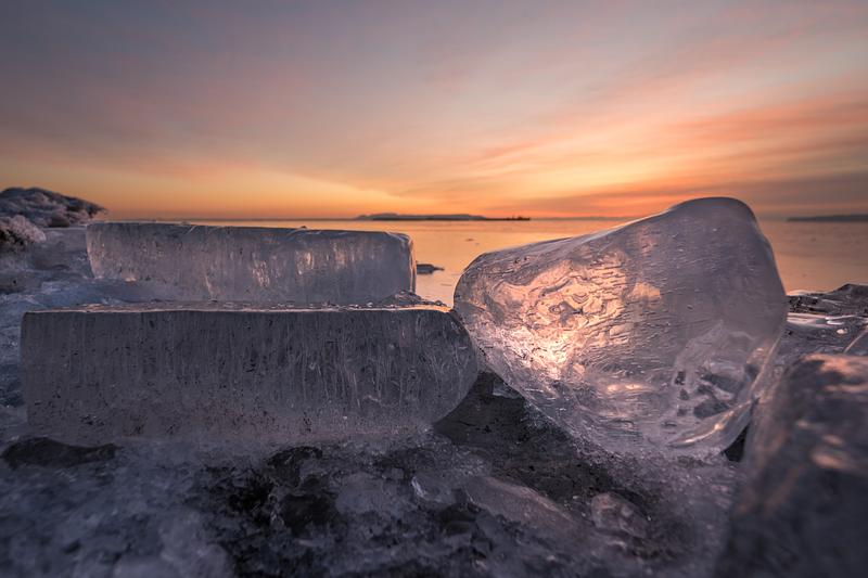 Lake Superior Fresh Ice Blocks That Have Washed Up In A Storm & The Sleeping Giant