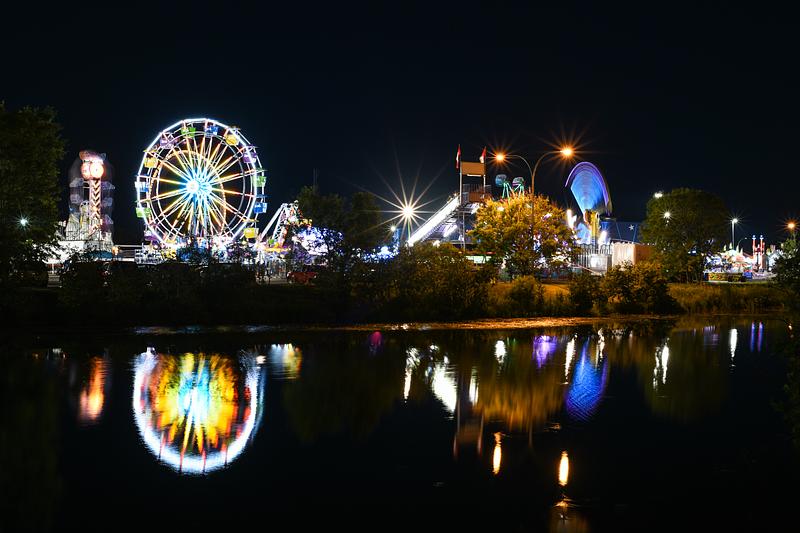 The Lights of The Canadian Lakehead Exhibition Reflected In The River Water