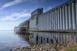A Ship Is Being Loaded With Grain In The Thunder Bay Harbour