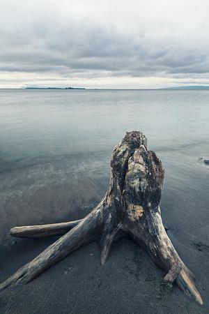 A Tree Stump on the shore of lake superior
