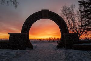 Sunrise through the Marina Park Arch in Thunder Bay, Ontario