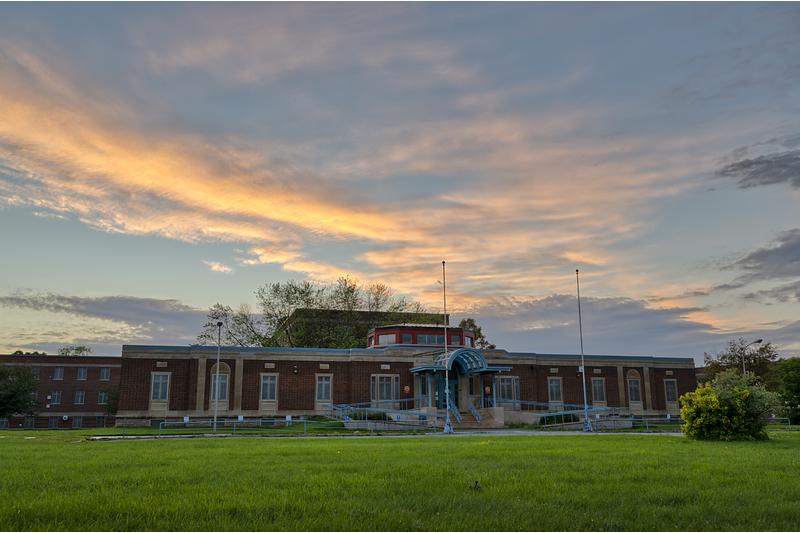 Sunset behind the old Lakehead Psychiatric Hospital July 2022